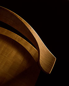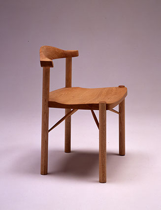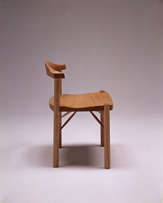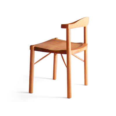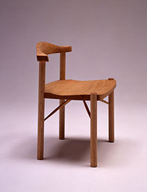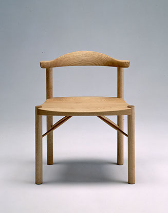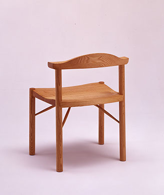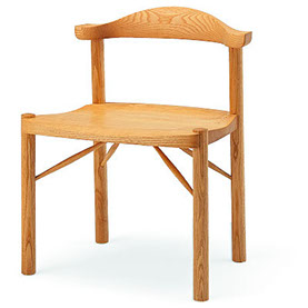 無垢材の座面はゆったりとしていて、正面を向いて座るだけではなく、斜め前に方向を変えて座る際などに動きやすくなっています。背から伸びた肘受けに肘を乗せることができます。