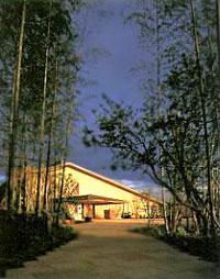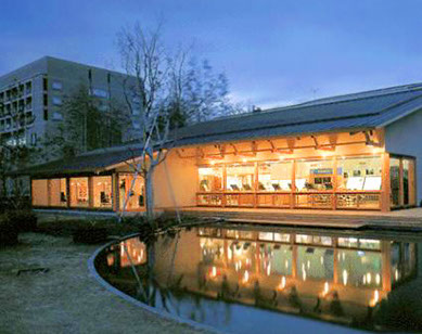 この地域の植生をモデルに、雑木林、野原、水辺などが一体となった小さな二次自然-里山の風景の創出をめざしている。建物北側の一段高い地盤面に常緑樹林のスクリーンを形成することで、南側からは森をイメージした景観になっている。南側にはこの地域の代表的な植生であるクヌギやコナラの落葉樹林を再生し、なだらかな芝生の広がりの中に敷地内の雨水を利用した池を点在させている。建物はこれらの外部環境と調和するように広く開口部が取られ、南側に設けられた木製のデッキが自然を呼び込み、四季の移り変わりを楽しむことができる。