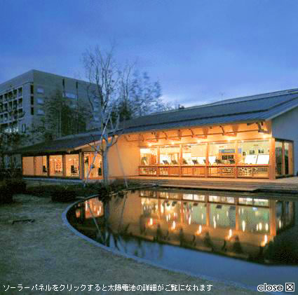 近年、汚染物質を排出しないクリーンエネルギーの観点から太陽光発電が注目されている。この施設では、屋根材が太陽電池であり、しかも空気集熱板を兼ねているという特徴をもっている。この太陽光発電によって、この施設の外気導入式パッシブソーラーシステム、補助暖房、吸着式除湿冷房、給湯、外灯や池のポンプなどに使用される電気量はほぼ賄うことができている。