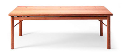樹齢200年を越えたミズナラ材の一木から組み合わせて作られています。しっかりとしたハの字型の脚で支える構造で、揺れも少なく安定しています。室内空間で中心的存在になります。